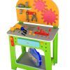 این میز بهمراه جعبه ابزار و چرخنده های چرخان جذاب و ابزار های ضروری پیچ و مهره های باز و بسته شو و آچار و پیچ گوشتی ارائه میشود.
